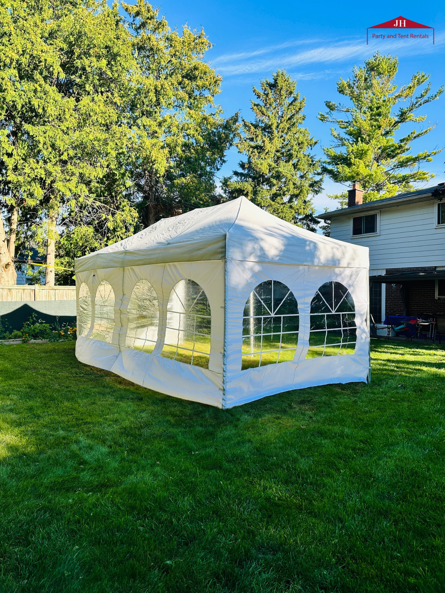 This rental includes the tent frame and canopy top only. Sidewalls are not included but can be rented separately.