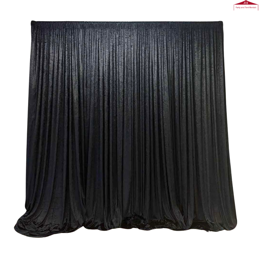 Transform any space into a stunning visual experience with this elegant black velvet draping. Measuring an impressive 20 feet high by 14 feet wide, this luxurious backdrop is perfect for full wall draping, creating a rich, dramatic atmosphere that instantly elevates your event.